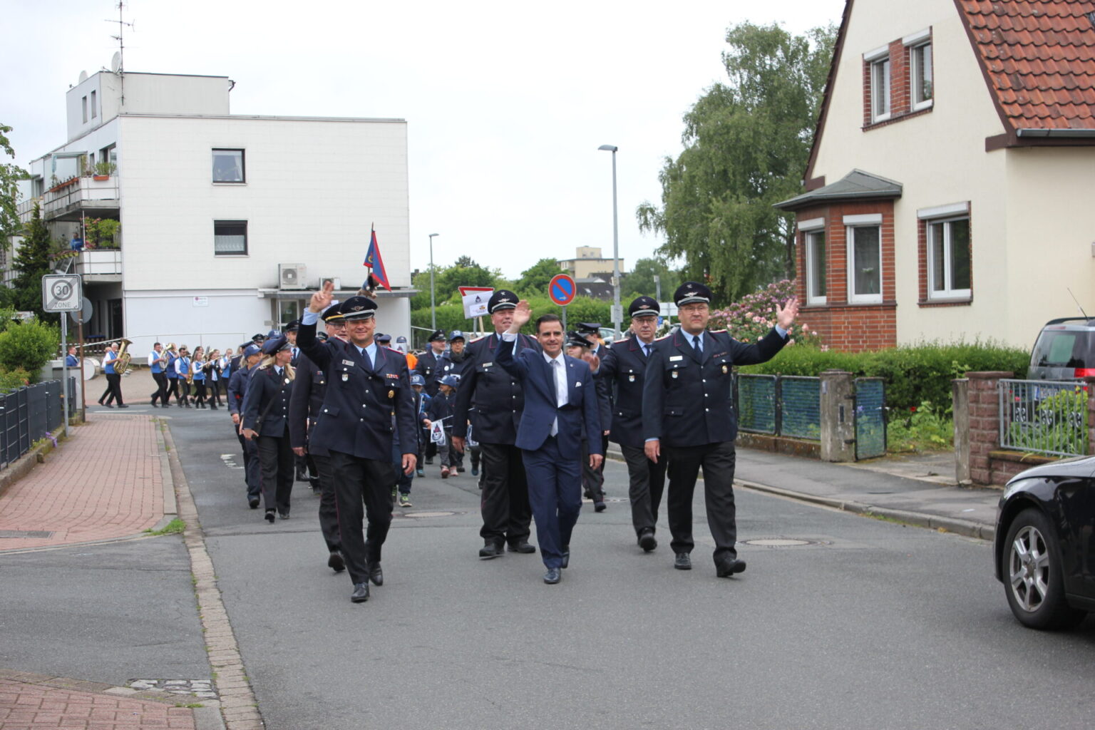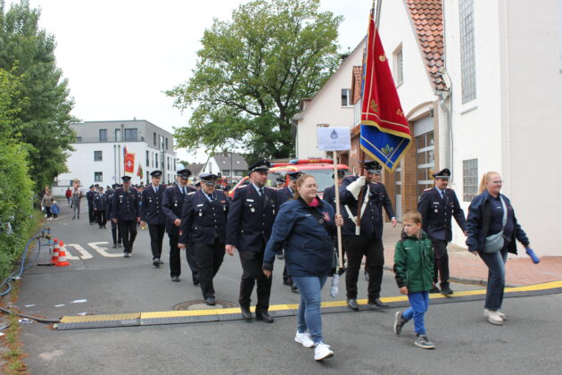 Der Sonntag begann mit einem weiteren Höhepunkt: Ab 13 Uhr zogen Feuerwehren und Vereine in einem feierlichen Festumzug durch Altgarbsen – trotz Nieselregens, den sich weder die Teilnehmenden noch die Zuschauer an der Strecke anmerken ließen. Die Route führte durch: