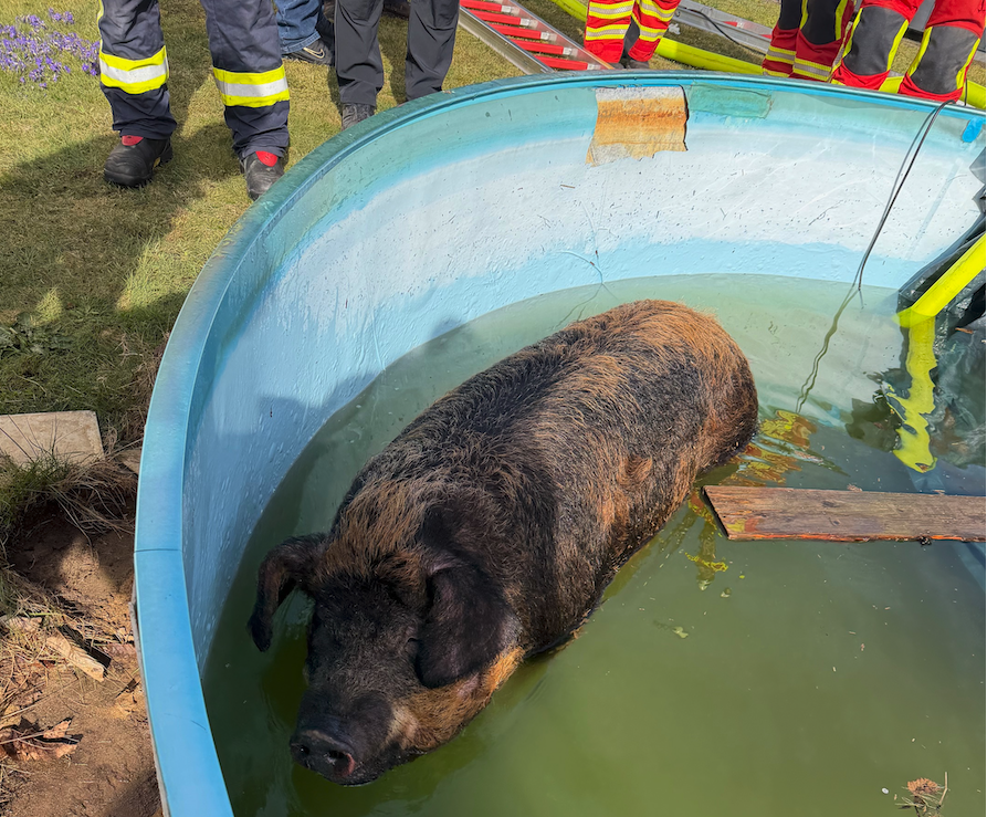 Start Aktuelles 300-Kilo-Schwein aus Gartenpool gerettet – Kurioser Feuerwehreinsatz in Frielingen