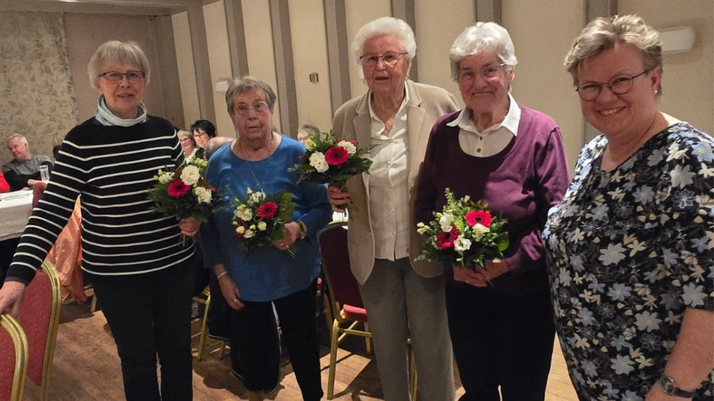 Sie erhielten als Dank einen rot-weißen Blumenstrauß sowie herzliche Glückwünsche von der Vorsitzenden und den Mitgliedern. Auch Ursula Greiner und Luise Bormann gehören zu den Gründungsmitgliedern und werden ihre Ehrung zu einem späteren Zeitpunkt erhalten.