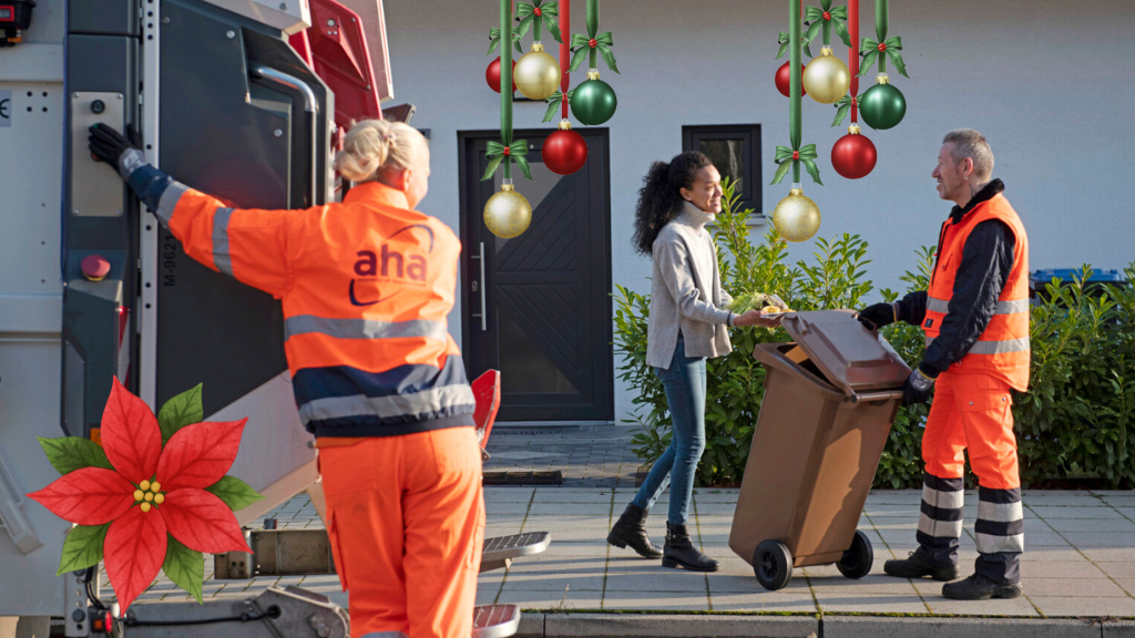Bereits am Sonnabend, 20. Dezember, beginnt aha mit vorgezogenen Touren. Betroffen sind alle Haushalte, deren regulärer Abfuhrtermin auf Montag, 22. Dezember gefallen wäre. Bis einschließlich Heiligabend (24. Dezember)erfolgt die Abholung jeweils einen Tag früher. Die am zweiten Weihnachtsfeiertag ausfallende Tour wird am Sonnabend, 27. Dezember nachgeholt.