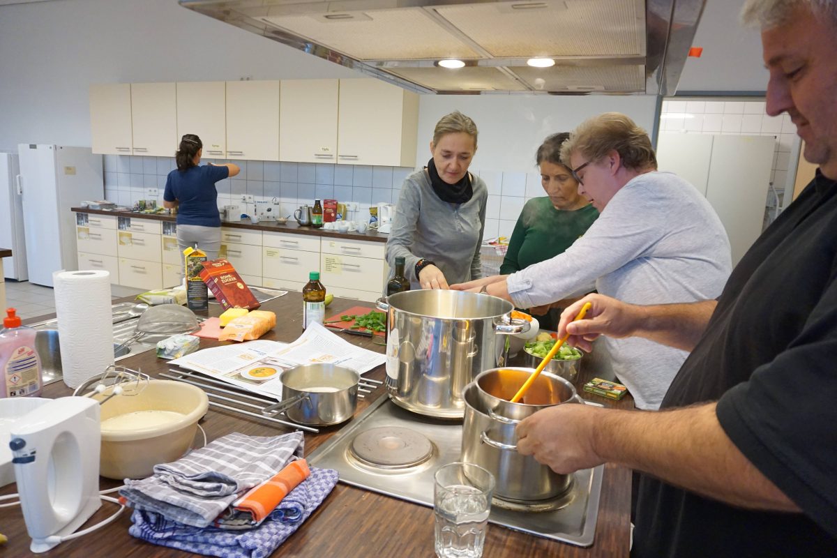 14 Teilnehmer kamen in der Schule am Kleegrund zusammen und kochten bei der Veranstaltung „So schmeckt uns die Welt kocht fair“ ein Drei-Gänge-Menü, das mit Zutaten aus Fairem Handel zubereitet wurde. Die Hobbyköche waren sich einig: Faires Essen schmeckt!