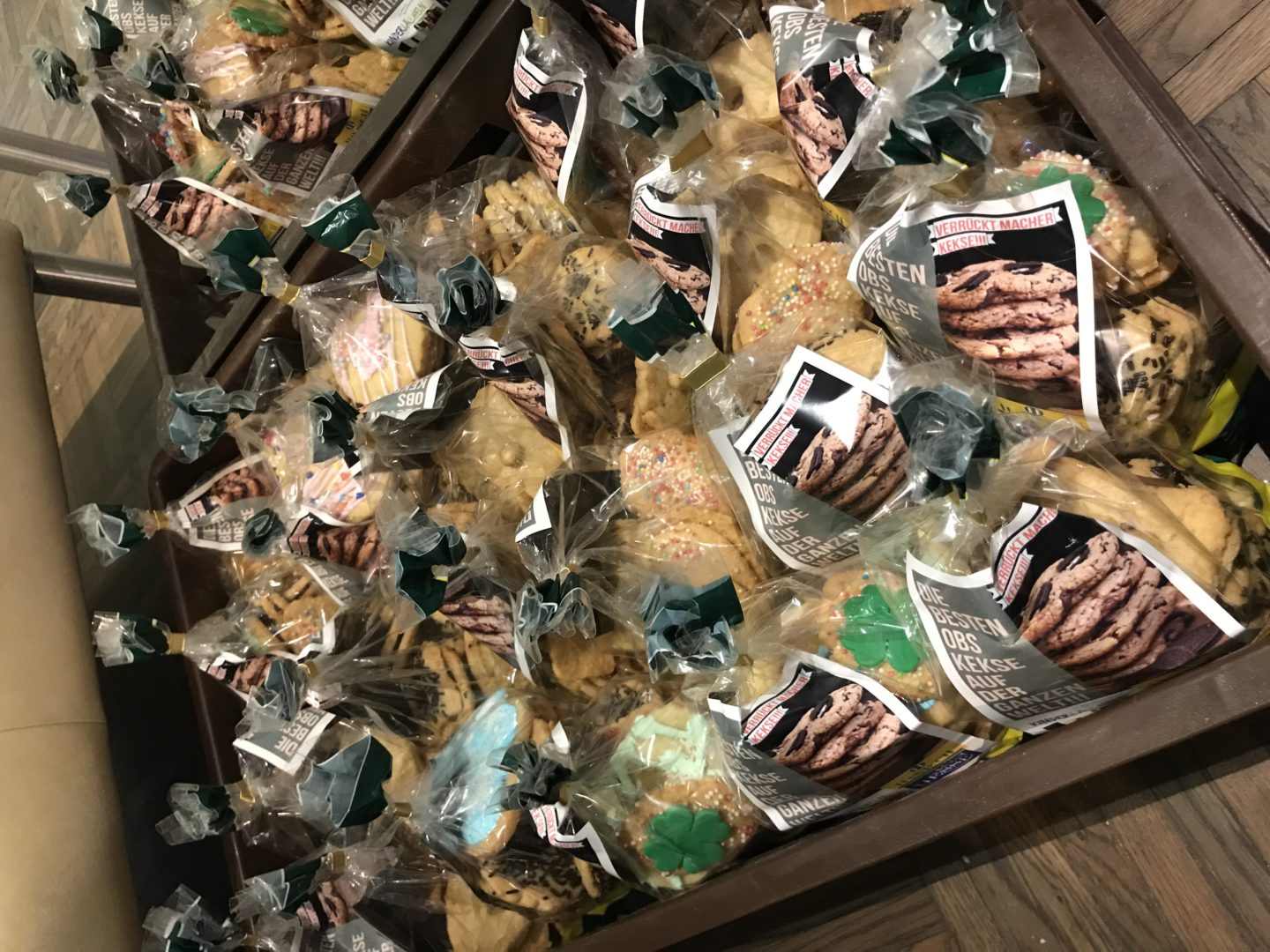 555 Tüten mit selbst gebackenen Plätzchen für alle Schüler, Lehrer und Beschäftigten