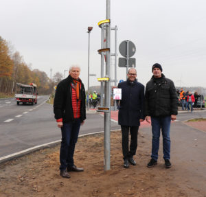 Garbsen – Garbsen geht innovative Wege: Am Amazon-Betriebsgelände an der Burgstraße ist heute die bundesweit erste Bike-Flash-Anlage als Pilotprojekt in Betrieb genommen worden. Bürgermeister Christian Grahl, Ulf-Birger Franz, Verkehrsdezernent der Region Hannover, und der Flensburger Bike-Flash-Erfinder Martin Budde präsentierten die Anlage erstmals der Öffentlichkeit.