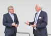 Gemeinsam mit Christoph Bahlmann, stellvertretender Leiter der Feuerwehr Hannover, und Regionsbrandmeister Karl-Heinz Mensing drückt Hermenau symbolisch den Start-Button in der Regionsleitstelle Hannover für die Probealarmierung anlässlich des Bundeswarntages am 10. September.