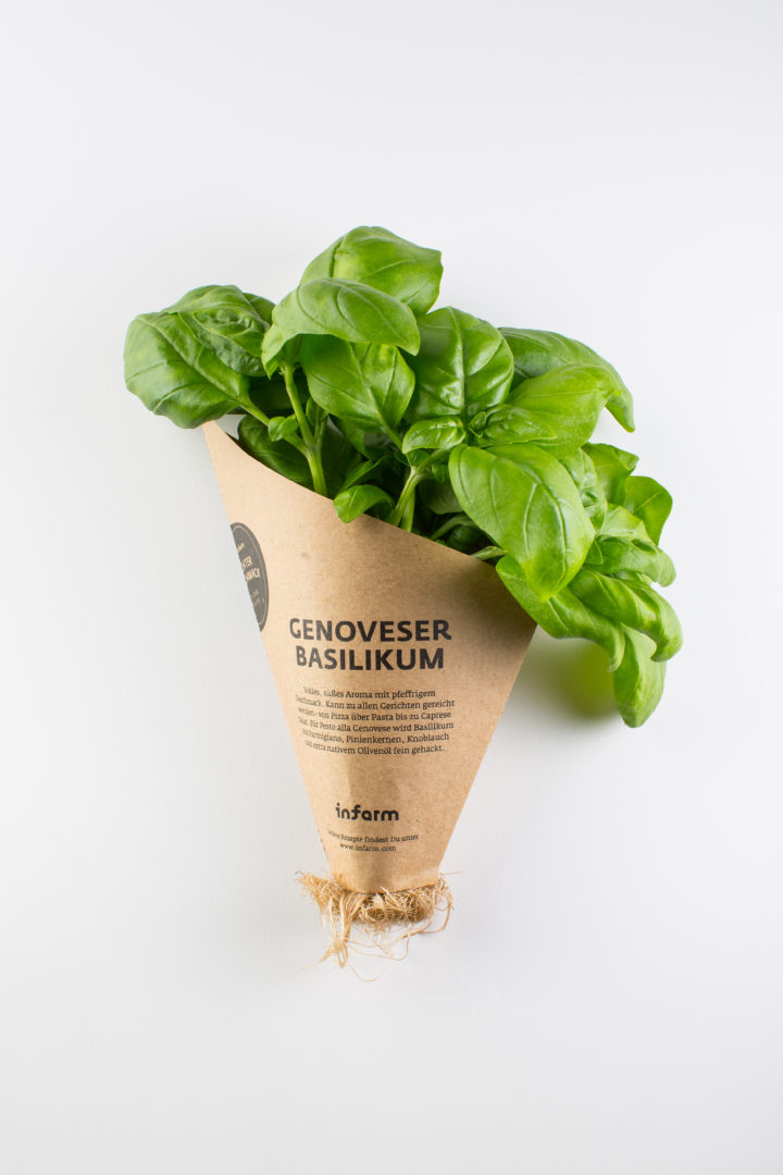 Infarm´s lebende Kräuter stammen aus gentechnisch unveränderten, natürlichen Samen, die in einer kontrollierten Umgebung wachsen und deswegen ohne schädigende Pestizide auskommen. Durch den Anbau der Kräuter vor Ort oder im nahen Umkreis, kommen die Produkte ohne lange Lieferwege und Verpackungsmüll aus. Denn je länger der Zeitpunkt der Ernte zurückliegt, desto mehr gehen die wichtigen Nährstoffe und der volle Geschmack verloren. Durch die optimalen Wachstumsbedingungen und die effiziente Nutzung der Fläche kann Infarm zudem auf 2 Quadratmeternbis zu 7.500 Pflanzen pro Jahr anbauen und das mit 95% weniger Wasserverbrauch im Vergleich zur herkömmlichen Landwirtschaft.