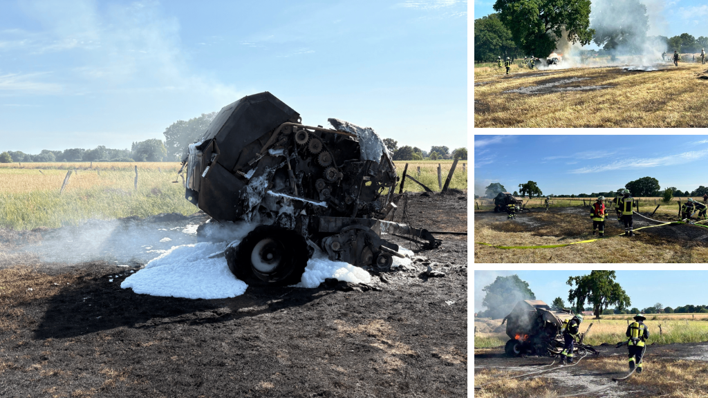 Am Freitagnachmittag gegen 16:30 Uhr wurden die Feuerwehren Osterwald Oberende, Osterwald Unterende und Frielingen gemeinsam mit der Einsatzleitwagen-Besatzung der Stadtfeuerwehr zu einem Feldbrand in Osterwald Unterende gerufen. Dort brannte eine Rundballenpresse in voller Ausdehnung. Auch Teile des Feldes standen bereits in Flammen. Die starke Rauchentwicklung war schon aus der Ferne sichtbar, weshalb die Alarmstufe schnell erhöht wurde.
