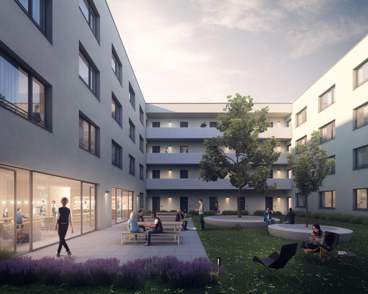 Die Apartments sind komplett möbliert und jedes erhält einen eigenen Fahrrad-Stellplatz. Es wird einen Aufenthaltsraum und einen windgeschützten und begrünten Innenhof geben, der zum Treffpunkt der Studenten werden könnte. Die Gesamtmiete soll 400,–€ incl. Neben- und Energiekosten, nicht überschreiten.