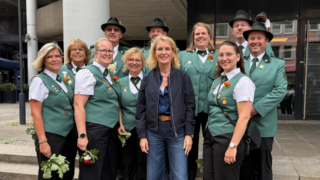 Für viele Beteiligte war vor allem der Blick hinter die Kulissen ein unvergessliches Erlebnis. Neben den Dreharbeiten im realen Festumzug ging es für weitere Szenen auch auf den Schützenplatz sowie nach Hamburg. Besonders beeindruckend: die Begegnung mit bekannten Schauspielerinnen und Schauspielern. Allen voran Maria Furtwängler, die seit Jahren als Kommissarin Charlotte Lindholm das Gesicht des norddeutschen „Tatorts“ prägt.