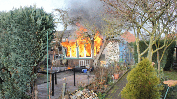 Gartenlaube steht in Altgarbsen in Vollbrand –  Asbest-Verdacht sorgt für langen Feuerwehreinsatz