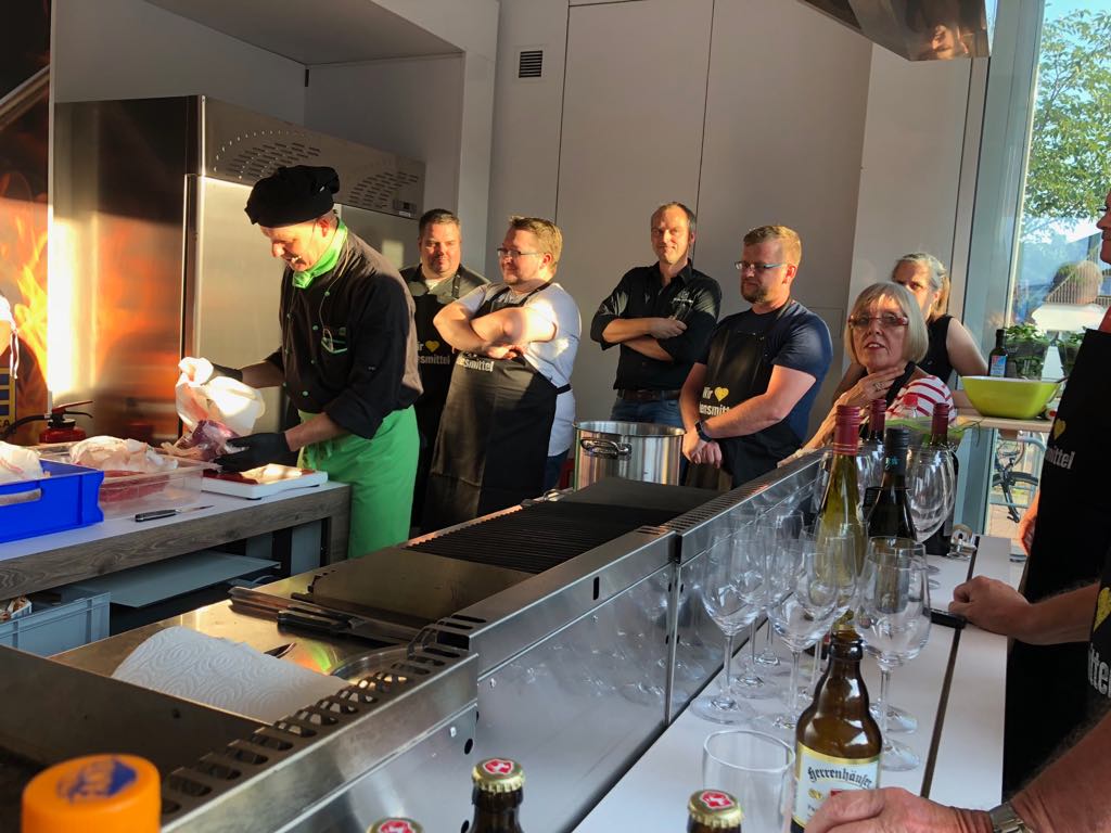 Die Hauptspeise bereitete der Bielefelder Koch mit einigen Teilnehmern vor. Fünf verschiedene Arten von Rindfleisch, wie beispielsweise Rinderfilet und Steaks wurden zubereitet. Alle benötigten Lebensmittel stellte Ingo Kirchhoff aus der Edeka Filiale zur Verfügung.