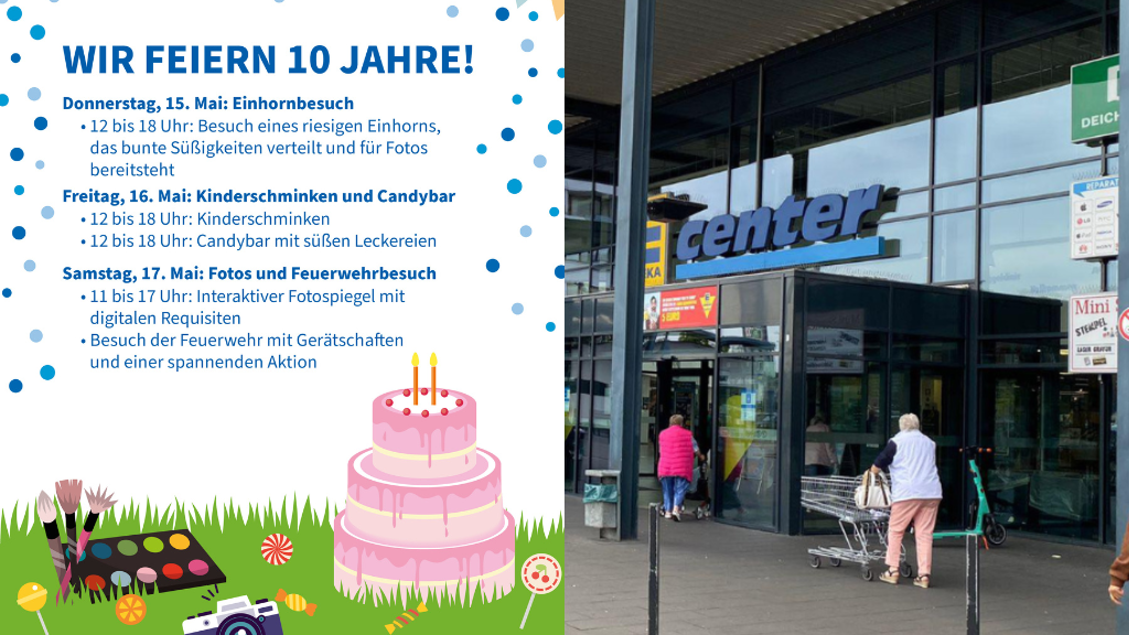 Das Planetencenter Garbsen feiert in diesem Jahr sein 10-jähriges Bestehen – und das mit einem bunten Programm für die ganze Familie! Von Donnerstag, 15. Mai, bis Samstag, 17. Mai, verwandelt sich das Einkaufszentrum in eine farbenfrohe Erlebniswelt mit Mitmachaktionen, Überraschungsgästen und kulinarischen Highlights.