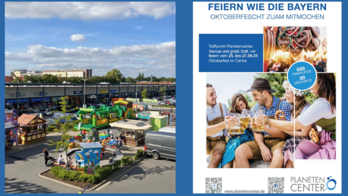 Das Planetencenter lädt auch in diesem Jahr wieder zum beliebten kleinen Oktoberfest ein. Vom 25. bis 27. September 2025 verwandelt sich der Mittelstreifen des Parkplatzes vor dem Edeka-Eingang erneut in eine bunte Festmeile mit Attraktionen für Groß und Klein.