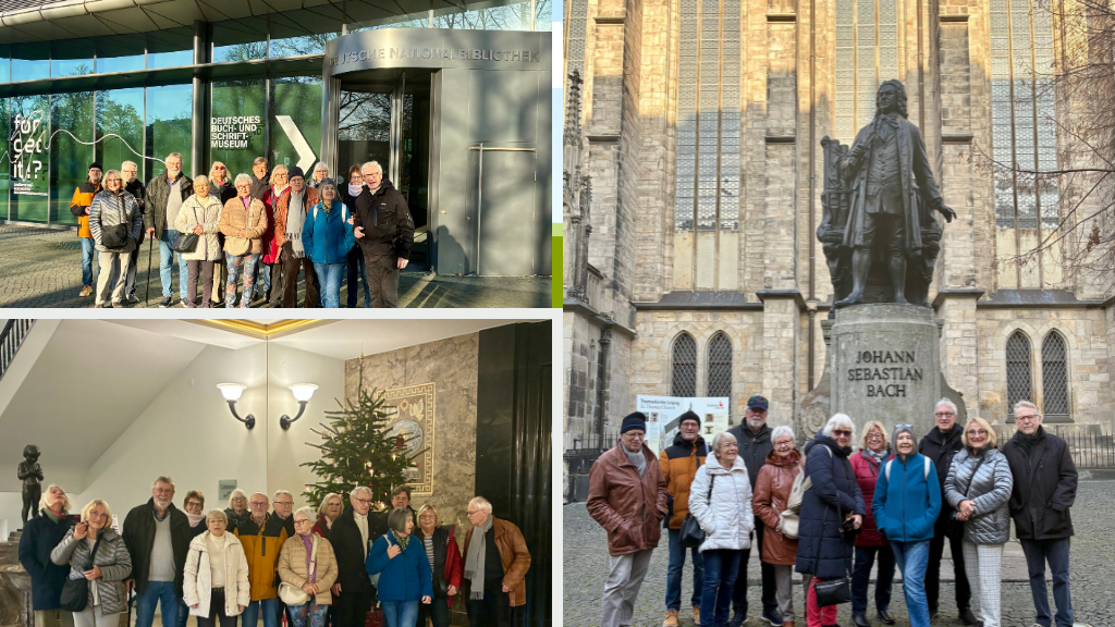 Einen besonders nachhaltigen Eindruck hinterließ der historische Rückblick auf die Friedliche Revolution von 1989. Die Nikolaikirche als zentraler Schauplatz dieser Ereignisse wurde für die Teilnehmenden zu einem bewegenden Ort der Erinnerung. Einen stimmungsvollen Kontrast bot der Besuch des Leipziger Weihnachtsmarktes, einem der ältesten und größten in Deutschland, der mit Lichtern, Düften und regem Treiben für festliche Atmosphäre sorgte. Der Abend klang traditionsreich in Auerbachs Keller aus.