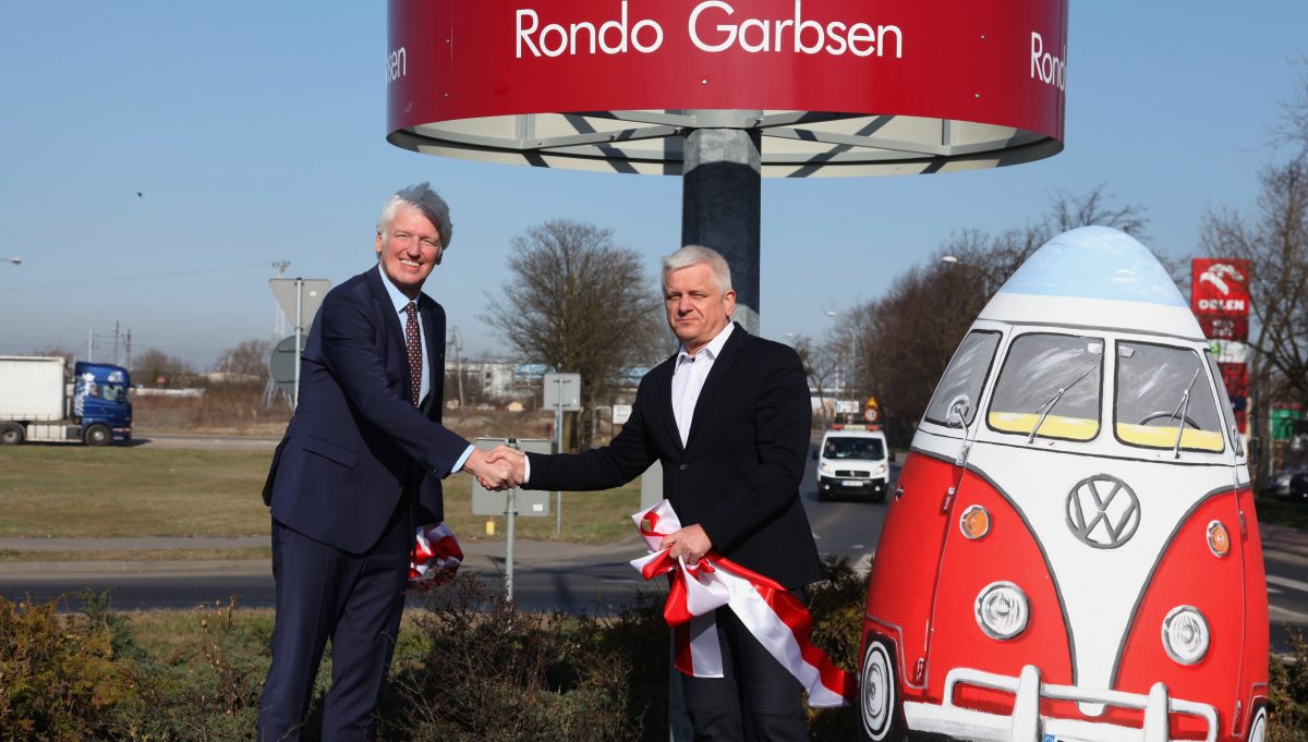 In Garbsens Partnerstadt Wreschen ist ein Kreisel zum sichtbaren Zeichen der Städtepartnerschaft mit Garbsen geworden. Die beiden Bürgermeister eröffneten das Rondo Garbsen offiziell, Pfarrer Benno Nolte weihte es. „Der Kreisverkehrsplatz ist in seiner Lage und Größe etwa mit unserem Kreisel an der Gutenbergstraße vergleichbar und liegt an den verkehrsreichsten Straßen der Stadt direkt in Autobahnnähe“, berichtet Dirk Perschel, Leiter des Fachbereichs Verkehr bei der Stadt Garbsen, der ebenso zur Delegation zählte.