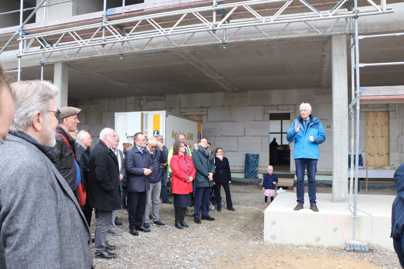 Bauherr Markus Grimm freute sich über die positive Resonanz und verkündete, dass die Bauarbeiten an dem vierstöckigen Gebäude exakt im Zeitplan lägen.