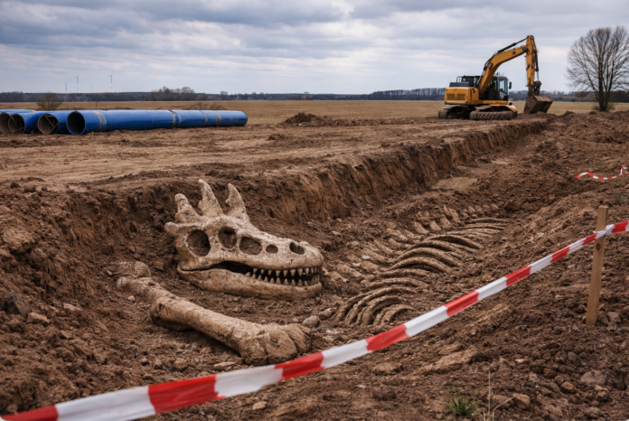 Was zunächst wie ein gewöhnlicher Arbeitstag auf der Südlink-Baustelle begann, entwickelte sich plötzlich zu einer echten Sensation. Bei Erdarbeiten stießen Bauarbeiter unerwartet auf einen riesigen Knochenfund. „Der Bagger hat einen gewaltigen Saurierknochen direkt vor meine Füße fallen lassen“, berichtet ein beteiligter Ingenieur, der anonym bleiben möchte. „Blindgänger aus dem Zweiten Weltkrieg sind wir gewohnt – aber so etwas habe ich noch nie gesehen.“