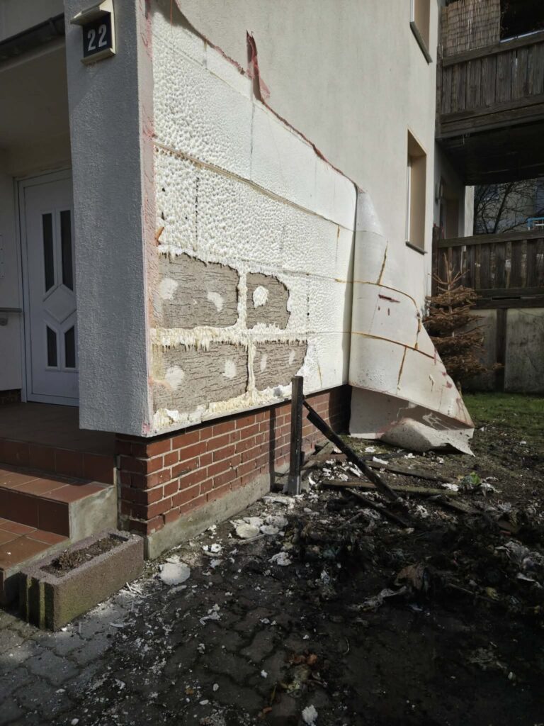 Eine Hausfassade wurde vom Brand beschädigt/Foto: privat