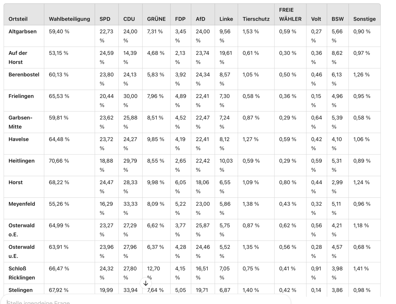 Die Ergebnisse in den einzelnen Ortsteilen von Garbsen
