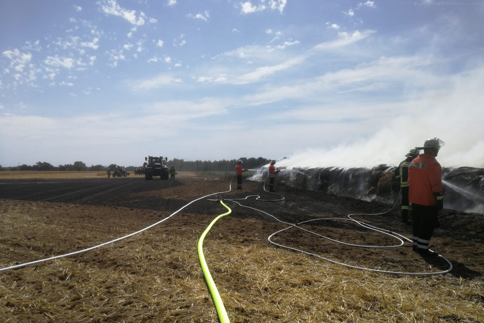 Die Arbeiten zu kompletten Ablöschen zogen sich noch bis in den Nachmittag hin. Während des Einsatz wurde gegen 13.20 Uhr eine weiterer Brand in Meyenfeld gemeldet. Hier war eine größere Fläche eines Stoppelfeldes in Brand geraten. Auch am Rand des Feldes liegende Rundballen gerieten in Brand.