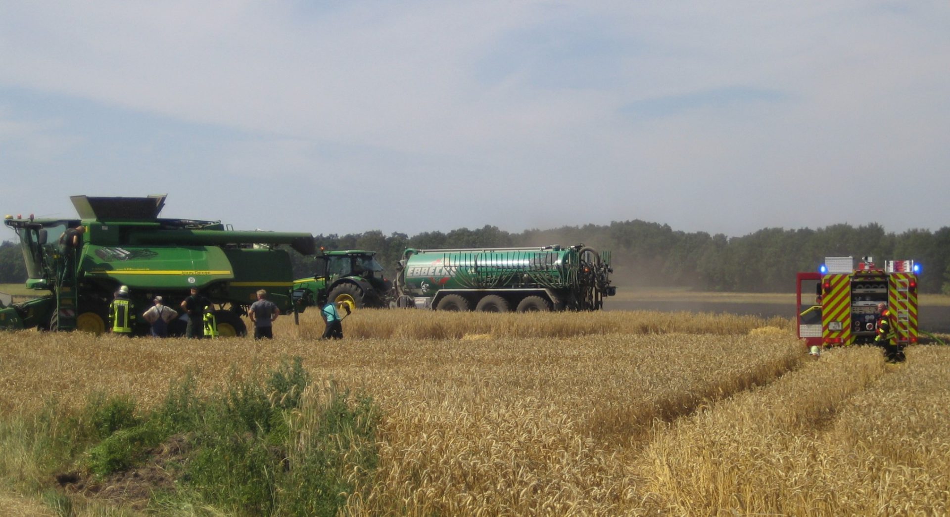 Auch hier konnte mit Unterstützung einiger Landwirte der Brand an weiterer Ausbreitung auf dem Getreidefeld gehindert werden. Des Weiteren drohte das Feuer sich weiter in der Böschung der B6 auszubreiten.