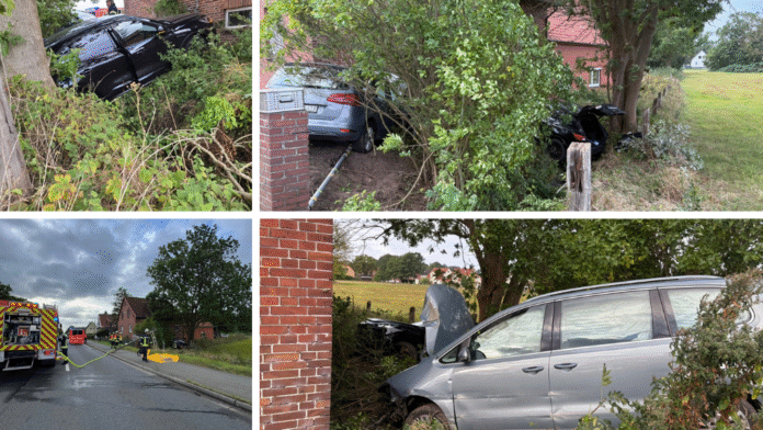 Nach bisherigen Erkenntnissen waren zwei Pkw von der Fahrbahn abgekommen und auf einem Grundstück unmittelbar vor einem Wohnhaus zum Stehen gekommen. Entgegen der ersten Meldung war jedoch keine Person in den Fahrzeugen eingeklemmt.