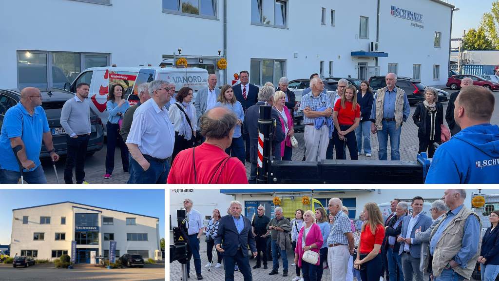 Wer in Garbsen oder der Region Hannover unterwegs ist, hat sie sicher schon gesehen: Die mächtigen, blauen Krane des Traditionsunternehmens Schwarze (ASC) GmbH aus Garbsen. Am 11. Juni lud der Stadtverband Garbsen der Mittelstands- und Wirtschaftsunion (MIT) gemeinsam mit dem Familienunternehmen zu einem spannenden Blick hinter die Kulissen ein – und fast 30 Mitglieder und Interessierte folgten der Einladung bei bestem Sommerwetter.