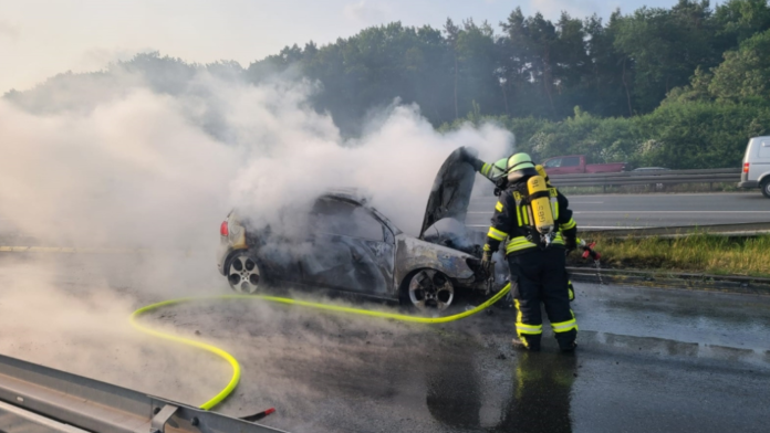 Nur wenige Stunden später, gegen 7.20 Uhr am Morgen, der nächste Einsatz: An der Raststätte Nord an der BAB A2stand ein weiterer Pkw beim Eintreffen der Feuerwehr vollständig in Brand. Auch hier kam ein Trupp unter Atemschutz zum Einsatz. Mit Wasser und anschließendem Löschschaum konnte das Feuer gelöscht werden.