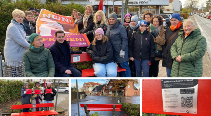 Die rote Bank auf der Roten Reihe in Berenbostel - Ein Symbol gegen Gewalt an Frauen. In Berenbostel  steht seit Kurzem eine auffällige rote Bank....
