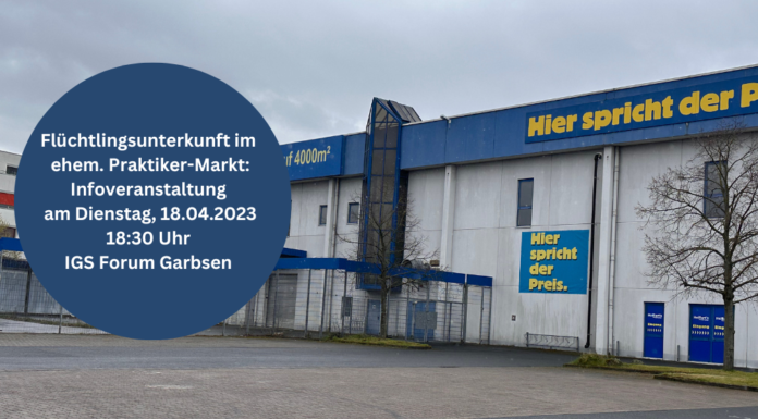 Garbsen - Einladung zur Informationsveranstaltung. Ab dem 1. Mai werden bis zu 500 Geflüchtete in den ehemaligen Praktiker-Markt an der alten Ricklinger Str in...
