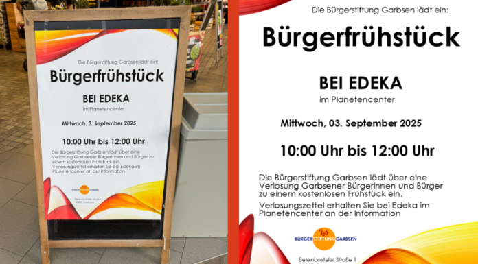 Garbsen - Gemeinsam Frühstücken in Garbsen - Bürgerstiftung und Edeka laden ein, jetzt mitmachen! Garbsen freut sich wieder auf ein besonderes Event: Die Bürgerstiftung Garbsen...