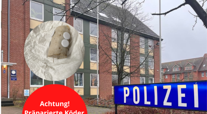 Garbsen - Die Polizeiinspektion Garbsen warnt vor ausgelegten Ködern, die mit Nadeln und Reißzwecken präpariert sind, im Garbsener Stadtteil Osterwald O.E. Hundehalterinnen und -haltern wird deshalb...