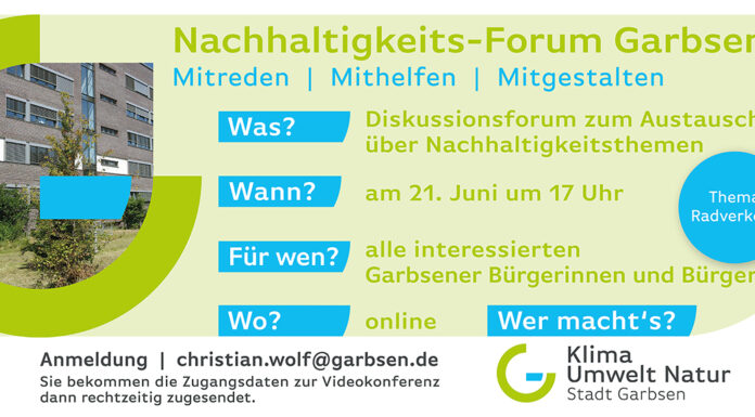 Garbsen - Die Stadt Garbsen lädt interessierte Garbsenerinnen und Garbsener zum zweiten Nachhaltigkeits-Forum ein. Am Montag, 21. Juni, ab 17 Uhr besteht wieder die Gelegenheit,...