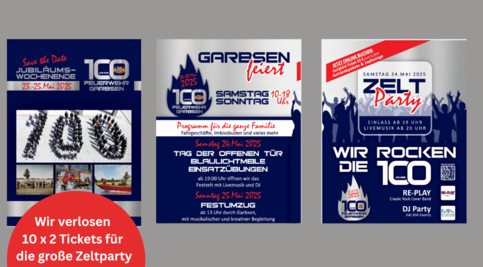Garbsen - 100 Jahre Feuerwehr Garbsen – Jetzt Tickets für die große Zeltparty gewinnen. Die Ortsfeuerwehr Garbsen feiert ein ganz besonderes Jubiläum: Seit 100 Jahren...