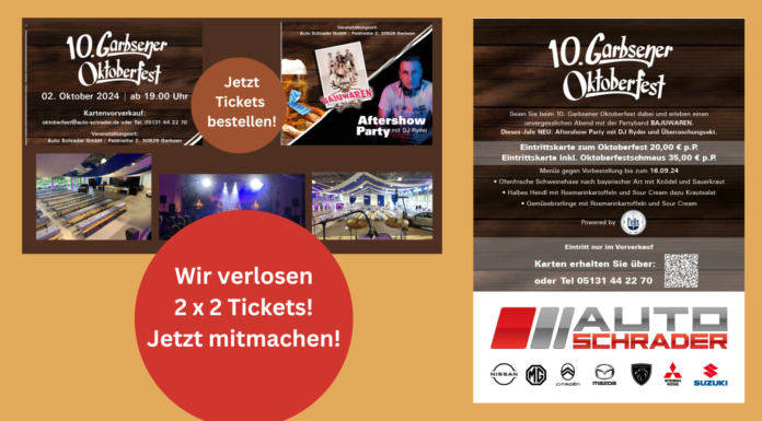Garbsen - Gewinnen Sie Tickets für das 10. Garbsener Oktoberfest bei Auto Schrader – Jetzt mitmachen! Der Countdown läuft: Das 10. Garbsener Oktoberfest bei Auto...