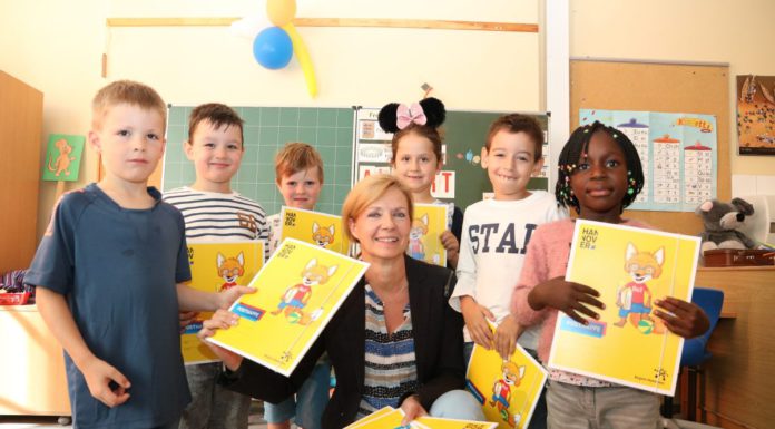 Regionsrätin Dr. Andrea Hanke überreicht BuT-Postmappen an Schulanfänger der Grundschule Am Lindener Markt Garbsen - Das Bildungs- und Teilhabepaket (BuT) fördert finanziell benachteiligte Kinder und...