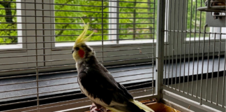 Gefiederter Überraschungsgast – Nymphensittich vor Büro der Hahne Holding auf dem...