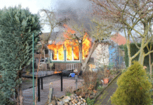 Gartenlaube steht in Altgarbsen in Vollbrand –  Asbest-Verdacht sorgt für langen Feuerwehreinsatz
