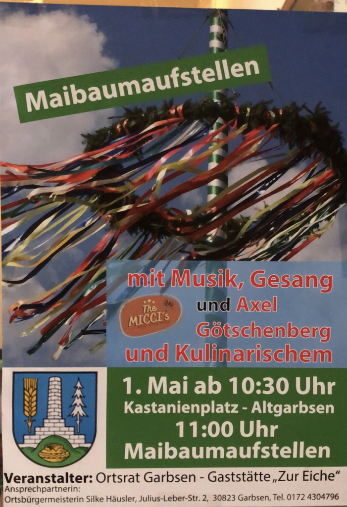 Maibaum aufstellen auf dem Kastanienplatz in Altgarbsen