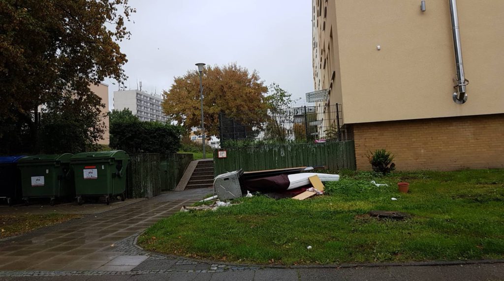 Die Wohnungen dort werden überwiegend von der Hausverwaltung VONOVIA vermietet und daher hat GCN sich an die entsprechende Pressestelle gewandt um herauszufinden, wer für die Entsorgung zuständig ist. Die Müllabfuhr kommt regelmäßig und wenn Sperrmüll bestellt wird, wird dieser auch ordnungsgemäß entsorgt. Hier scheint es sich um Müll zu handeln, der einfach dort hingeschmissen wird, ohne Sperrmüll anzumelden. Teilweise sind die Container auch hoffnungslos überfüllt und reichen evtl. für die Anzahl an Bewohnern dort nicht aus, auch hier wäre es dann Aufgabe der Hausverwaltung für mehr Container zu sorgen.