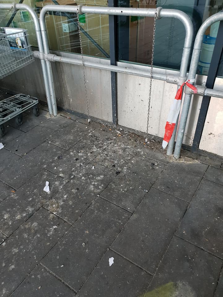 Der Platz an dem die Einkaufswagen stehen wird regelmäßig mit einem entsprechenden Hochdruckreiniger gereinigt, ebenso die Einkaufswagen. Bis alle zusätzlichen Maßnahmen abgeschlossen sind, werden die Verschmutzungen gezielt entfernt.