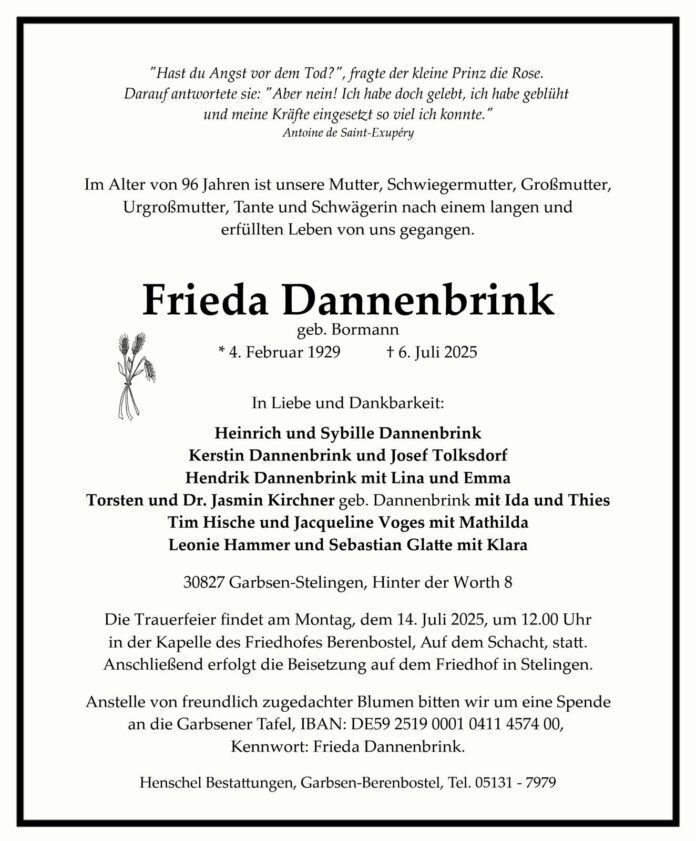 Die Familie Dannenbrink aus Stelingen trauert um Frieda Dannenbrink