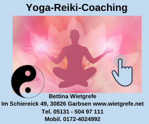 Garbsen – Bereits seit Februar diesen Jahres gibt es das Yoga-Reiki-Coaching-Studio von Bettina Wietgrefe in Garbsen-Osterwald.  Hier tritt der Alltag einmal in den Hintergrund und die Teilnehmer/innen können auf sanfte Art und Weise Ihrem Körper und natürlich der Seele etwas Gutes tun.