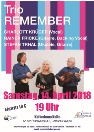 Garbsen – Das Trio Remember tritt am Sonnabend, 14. April, um 19 Uhr im Konzertsaal des Kulturhauses Kalle, An der Feuerwache 3-5, in Havelse auf.